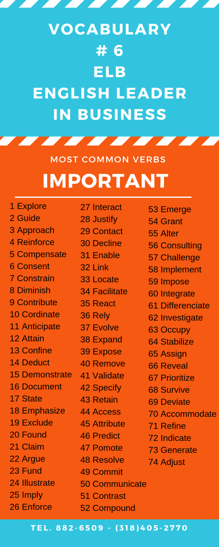Saber los verbos en INGLÉS es importante para lograr una comunicación apropiada y llegar a adquirir fluidez verbal. Aquí encontrara algunos de los verbos que van llegar a ser de gran ayuda en su aprendizaje.